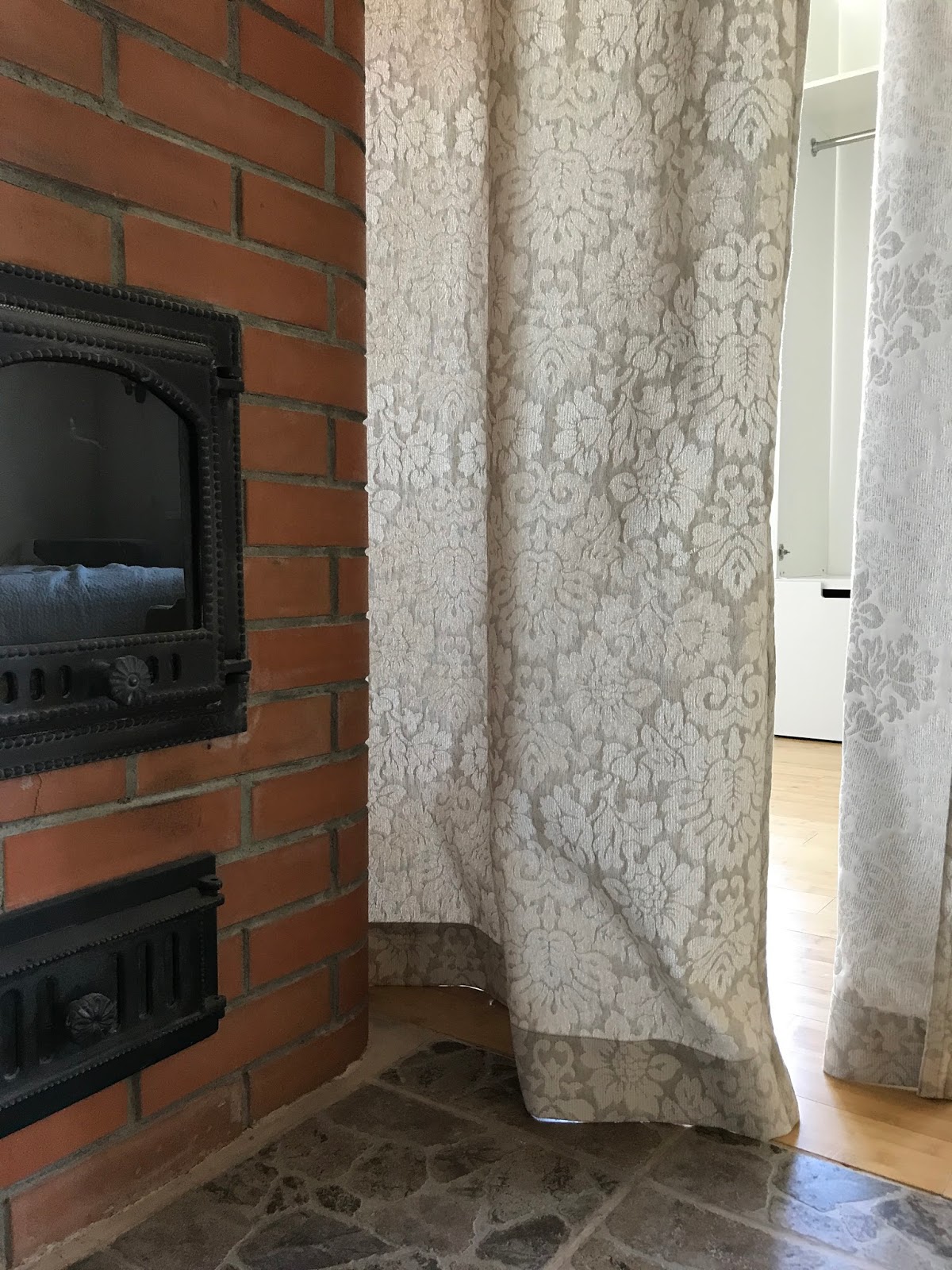 Sattusin sinna keset suuri remondiplaane ja valgeid unistusi. Soov oli eraldada kaks ruumi kardinaga, mis oleks piisavalt tihe, vaadeldav mõlemalt poolt ning loomulikult sobituks ka mõlema toa interjööriga. Kammisime mitmeid erinevaid kangapoode kuni jäime pidama heleda ornamentikaga mööblikanga juures, mis sobitus oma omadustelt kõige paremini meie ootustega.